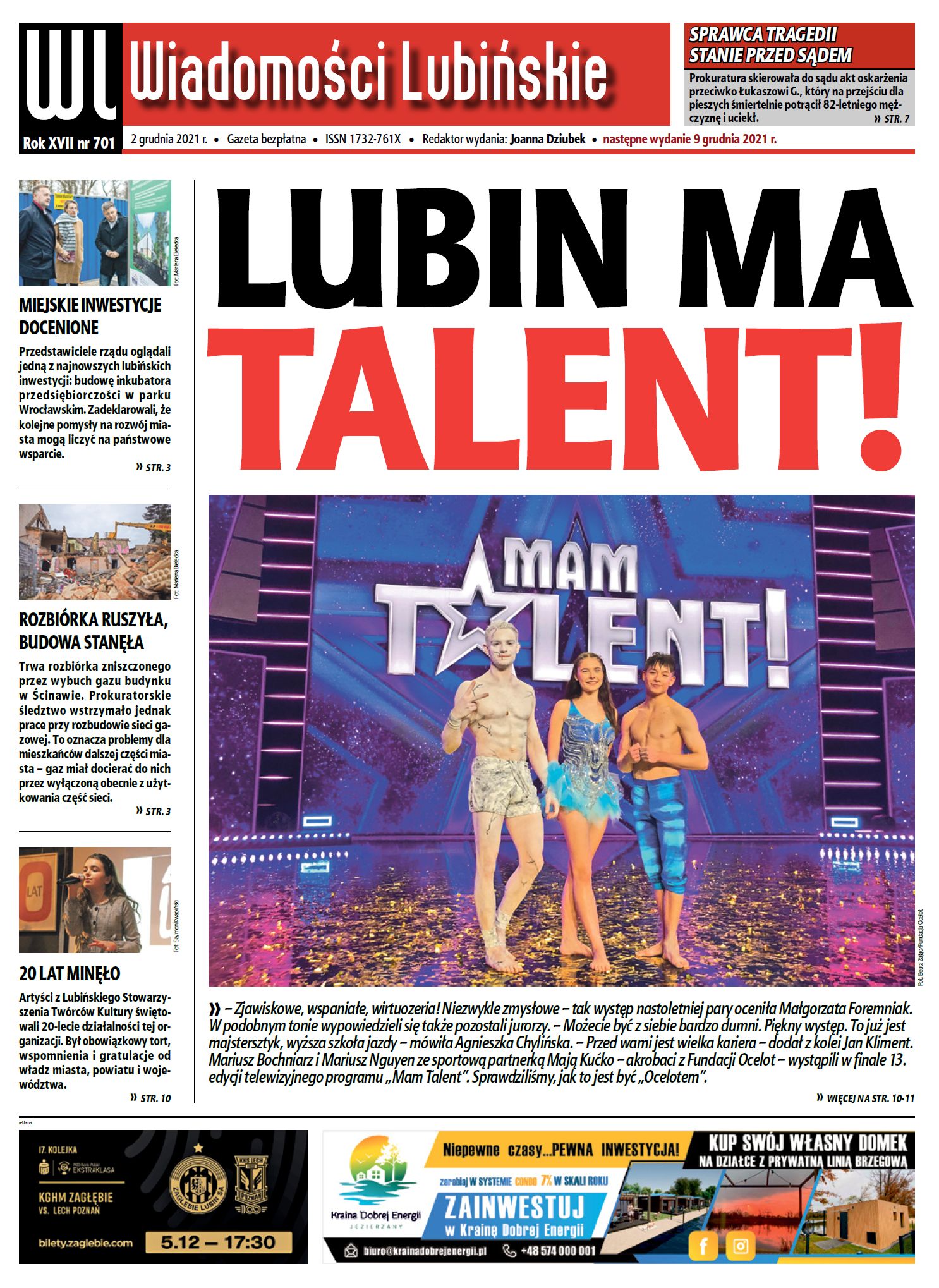 Trójka uzdolnionych akrobatów z Fundacji Ocelot urzekła jurorów telewizyjnego programu „Mam Talent”. O ich niezwykłych umiejętnościach piszemy w najnowszym wydaniu „Wiadomości Lubińskich”, które ukażą się 2 grudnia – jak zwykle w czwartek.