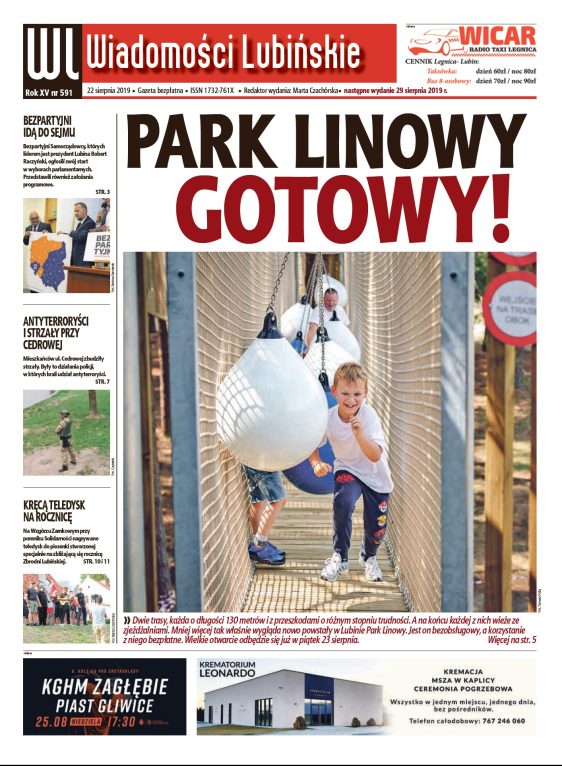 Dziś ukazał się kolejny numer „Wiadomości Lubińskich”. Przeczytacie w nim między innymi o planowanym otwarciu Parku Linowego w Lubinie, dalszym ciągu historii dotyczącej dokończenia budowy S3 oraz starcie w wyborach Bezpartyjnych Samorządowców.