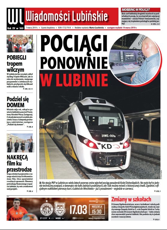 Między innymi o zakończeniu remontu torów między Lubinem a Legnicą oraz jeździe testowej pociągu Kolei Dolnośląskich piszemy w najnowszym numerze tygodnika „Wiadomości Lubińskie”, który ukaże się już jutro, 7 marca.