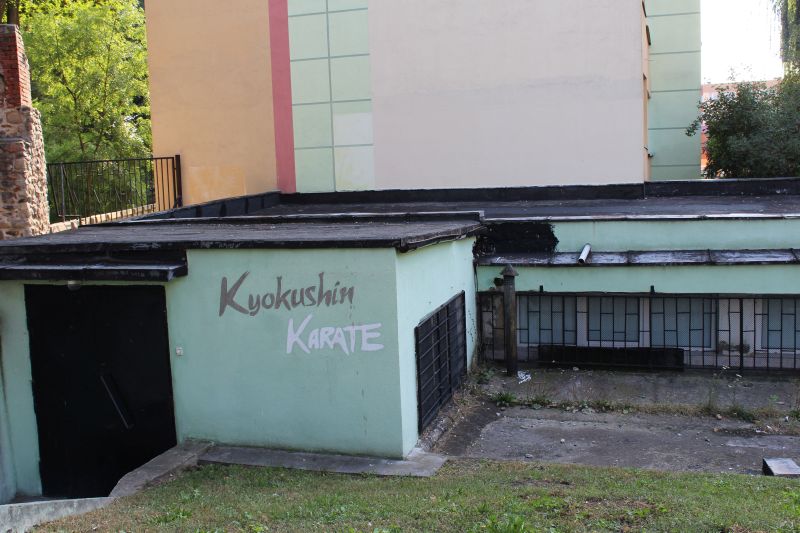 Rynek 16. Jest brudno, młodzież przychodzi na murek „na dymka” i piwo. Wieczorami gromadzą się tu mieszkańcy, często nietrzeźwi. Nie ma ławek, nie ma koszy na śmieci. Nie wiadomo, gdzie kończy się chodnik, gdzie zaczyna trawnik. W głębi podwórka wejście do klubu Karate Kyokushin. Schody prowadzą w dół, a za drzwiami pięknie urządzona sala do ćwiczeń, siłownia, sauna.