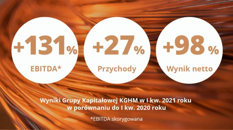 Istotna poprawa w zakresie EBITDA umożliwiła realizację wyniku netto Grupy KGHM na poziomie o 675 mln zł (+98 proc.) wyższym od zanotowanego w1 kwartale 2020 roku i zamknięcie go na koniec kwartału kwotą 1.365 mln zł. Taki poziom kwartalnego zysku netto jest najwyższy od czasu akwizycji aktywów zagranicznych. Podobnie zysk netto samej KGHM Polska Miedź S.A. (975 mln zł).