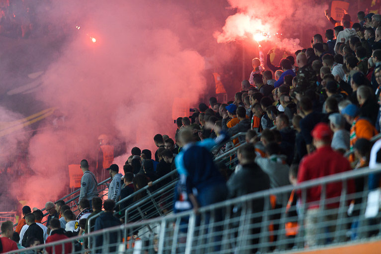 Później, po rozłożeniu swej sektorówki, kibice Śląska zaczęli odpalać race, które następnie rzucali w stronę kibiców Zagłębia Lubin. Siedziały tam też rodziny z dziećmi! Przez pewien czas sportowa rywalizacja zeszła na plan dalszy, a numerem jeden były niestety chuligańskie wybryki. Kilka krzesełek zajęło się ogniem. Nie wiadomo jeszcze jaka kara czeka przyjezdnych kibiców. Miedziowy klub oszacuje także straty wywołane zapaleniem siedzisk.