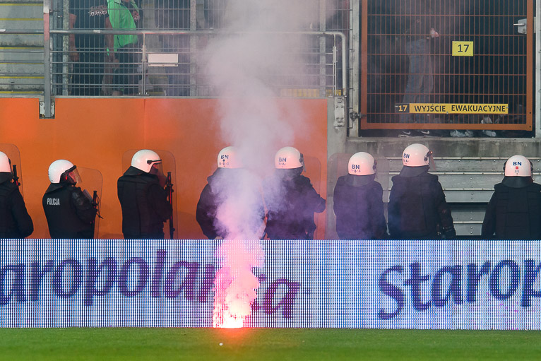 Niestety podczas derbowego spotkania pomiędzy Zagłębiem Lubin a Śląskiem Wrocław nie obyło się bez skandalu. Kibice przyjezdnych, którzy pojawili się na swoim sektorze w sile ponad 1000 gardeł, wszczynali zamieszki, a także używali środków pirotechnicznych. Zapalone race lądowały u stóp kibiców gospodarzy oraz na murawę.