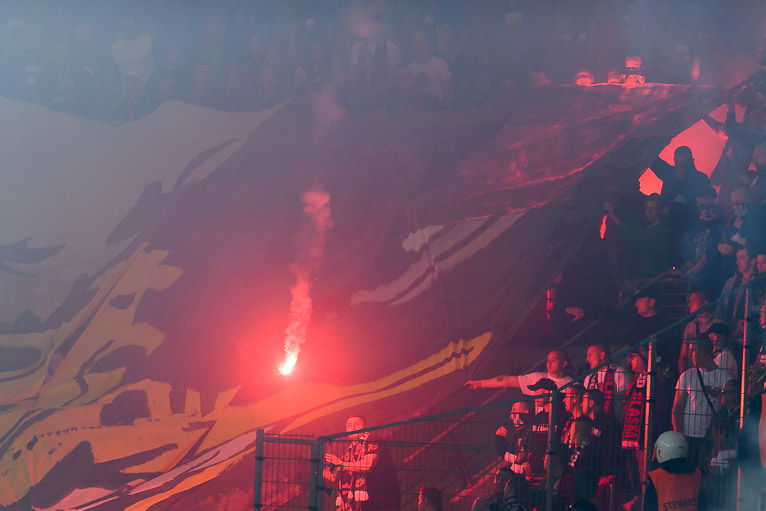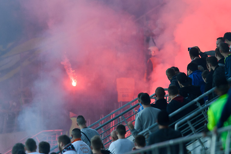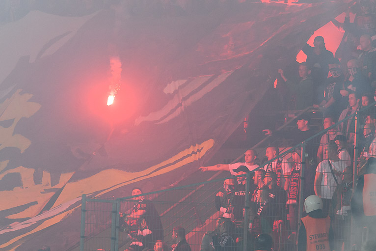 Później, po rozłożeniu swej sektorówki, kibice Śląska zaczęli odpalać race, które następnie rzucali w stronę kibiców Zagłębia Lubin. Siedziały tam też rodziny z dziećmi! Przez pewien czas sportowa rywalizacja zeszła na plan dalszy, a numerem jeden były niestety chuligańskie wybryki. Kilka krzesełek zajęło się ogniem. Nie wiadomo jeszcze jaka kara czeka przyjezdnych kibiców. Miedziowy klub oszacuje także straty wywołane zapaleniem siedzisk.