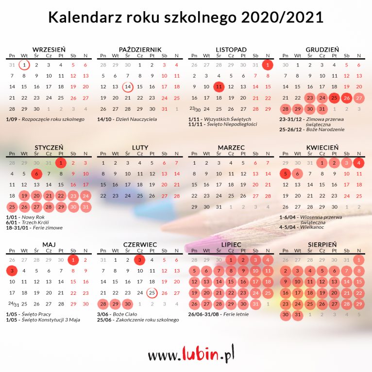 Poniżej publikujemy kalendarz na trwający już rok szkolny.