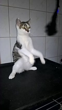 – Air to 4-miesięczny kocurek z porażonym splotem barkowym, prawdopodobnie został potrącony przez samochód. Jest miziastym kocurkiem, który mimo bolesnych zastrzyków kocha ludzi i naprawdę, gdy tylko ma okazję, wtula się mocno mrucząc. Chłopakowi daliśmy szansę i próbujemy uratować nogę, jednak w klatce rehabilitacja jest o wiele mniej skuteczna niż gdyby zwierzak biegał po mieszkaniu. Dlatego pilnie potrzeby domek, choćby tymczasowy, który jest w stanie pomóc. Rehabilitacja nie jest trudna ale wymaga systematyczności – mówi Ewa Chmielewska, która opiekuję się kotkiem. – Naprawdę pilnie potrzebna jest pomoc, bo chłopak rośnie i przykurcz łapki coraz większy. Dajmy mu szansę, gdy się nie uda gwarantujemy operację amputacji kończyny. Standardowo kociar szczepiony, odrobaczony, odpchlony z książeczką zdrowia – dodaje.