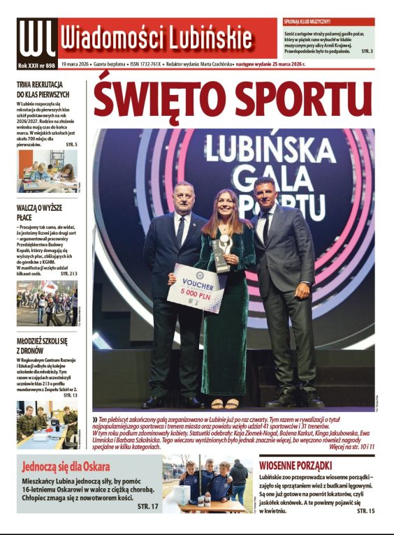 Z najnowszego numeru „Wiadomości Lubińskich”, który ukaże się już jutro, 19 marca, dowiecie się m.in. kto zwyciężył w plebiscycie na najpopularniejszego sportowca i trenera roku 2025 oraz jak wyglądała tegoroczna Lubińska Gala Sportu.