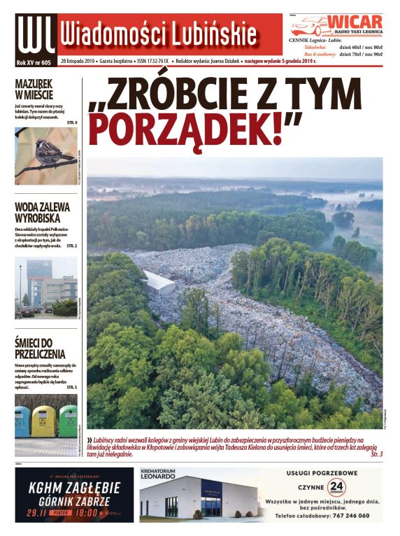 W najnowszym numerze „Wiadomości Lubińskich”, który ukaże się 28 listopada znajdziecie między innymi artykuł o nielegalnym składowisku odpadów w Kłopotowie.