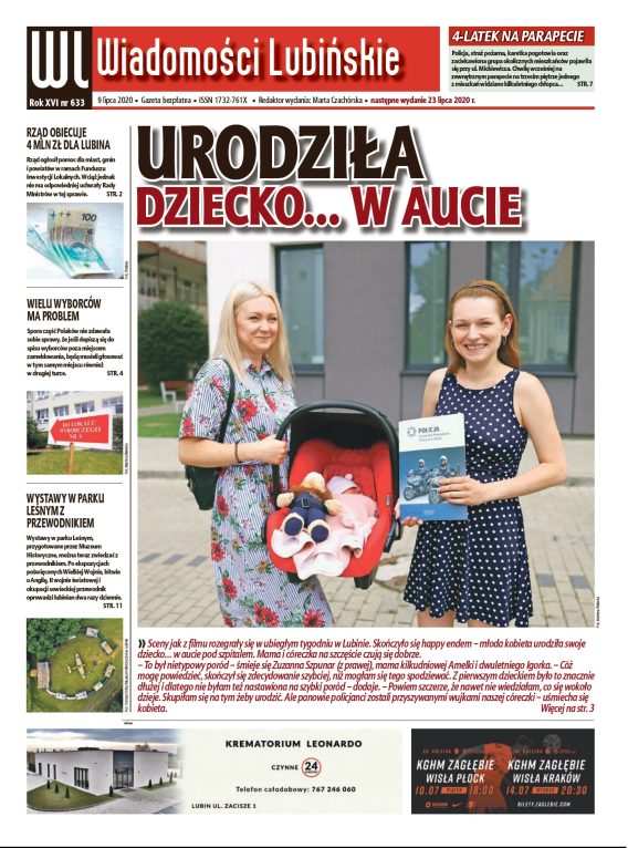 W najnowszym numerze „Wiadomości Lubińskich”, który ukaże się jutro, 9 lipca, niezwykła historia nietypowego porodu. Piszemy także między innymi o obietnicach wsparcia składanych przez rząd samorządom oraz o zbliżającej się drugiej turze wyborów prezydenckich.