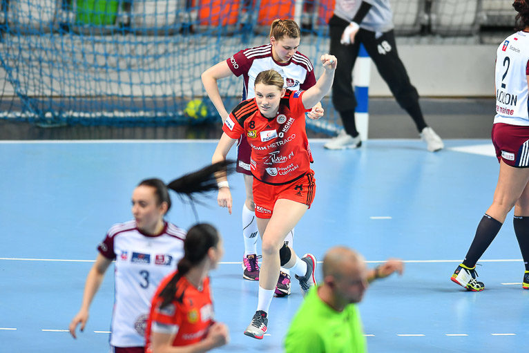 Druga połowa rozpoczęła się od dwóch popisowych akcji Agnieszki Jochymek, która dała prowadzenie miedziowym. Na 16:14 w 35. minucie atomowym rzutem podwyższyła wyróżniająca się, obok Jovany Milojević, na parkiecie Małgorzata Mączka. W drugiej połowie Metraco Zagłębie poprawiło obronę i skuteczność, co przyniosło zamierzony efekt. To, co nie udało się w pierwszej połowie udawało się w drugiej. Miedziowe wykorzystywały swoje szanse i odskoczyły rywalkom, prowadząc 19:15 dziesięć minut po zmianie stron. Chwila dekoncentracji kosztowała lubinianki utratę wyraźniejszej przewagi. Kwadrans przed końcem o czas, przy wyniku 21:20, poprosiła trener Metraco Zagłębia Bożena Karkut. Wskazówki szkoleniowca przyniosły efekt i sześć minut przed końcem było 26:22, trzy bardzo ważne bramki rzuciła Karolina Semeniuk, która wzięła ciężar gry na swoje barki. Metraco Zagłębie, przy żywiołowym dopingu kibiców, do końca grało bardzo mądrze i odniosło w pełni zasłużone zwycięstwo!