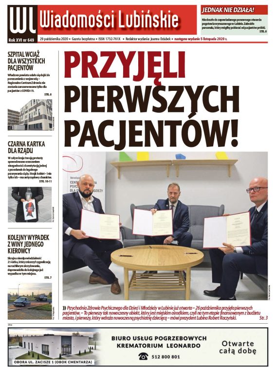 Poradnia Psychicznego Dzieci i Młodzieży już przyjmuje pacjentów w trybie stacjonarnym. O jej otwarciu i planach związanych z tą placówką mowa jest w najnowszym wydaniu „Wiadomości Lubińskich”, które ukaże się już jutro, 29 października.