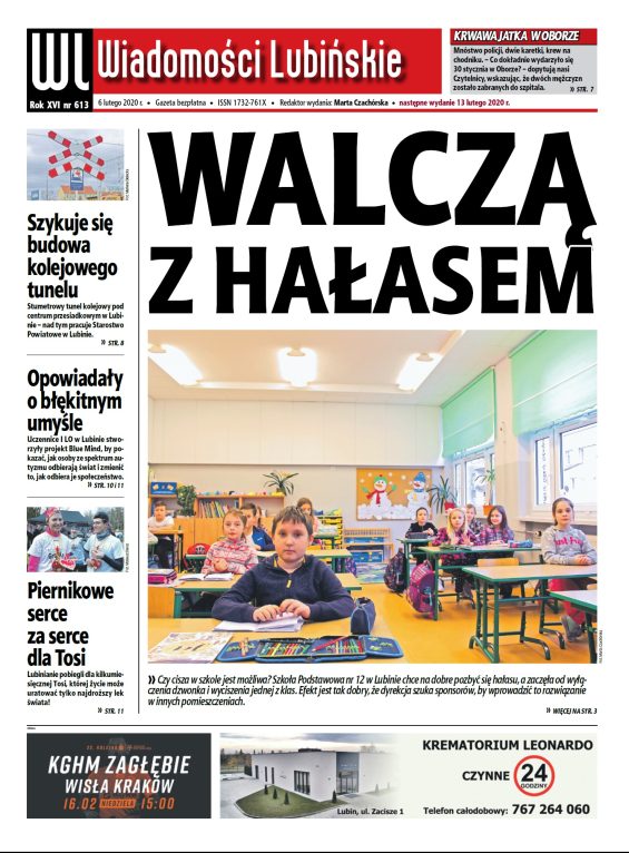 W najnowszym numerze „Wiadomości Lubińskich”, który ukaże się już jutro, 6 lutego, przeczytacie między innymi o pomysłach Szkoły Podstawowej nr 12 w Lubinie na pozbycie się hałasu oraz planach starostwa budowy tunelu kolejowego.