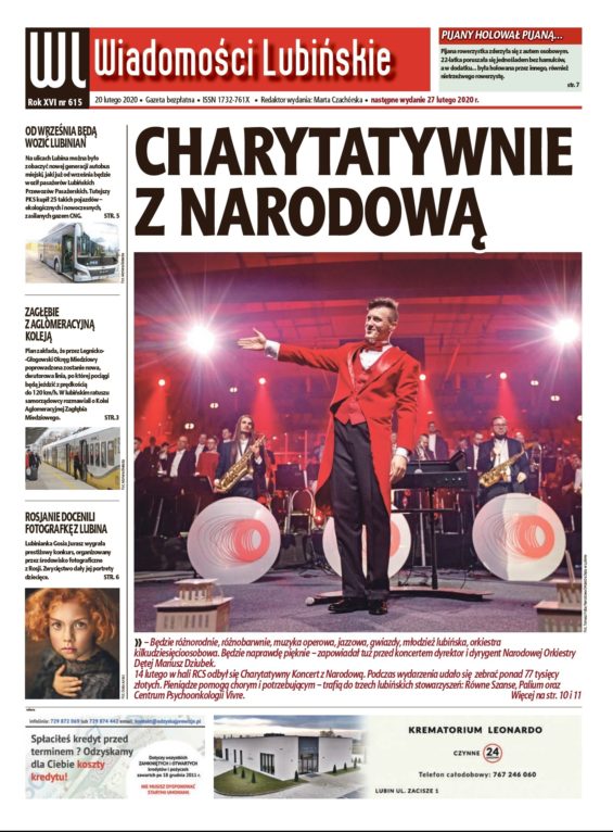 Obszerną fotorelację z Charytatywnego Koncertu z Narodową znajdziecie w nowym numerze „Wiadomości Lubińskich”, który ukaże się już jutro, 20 lutego.