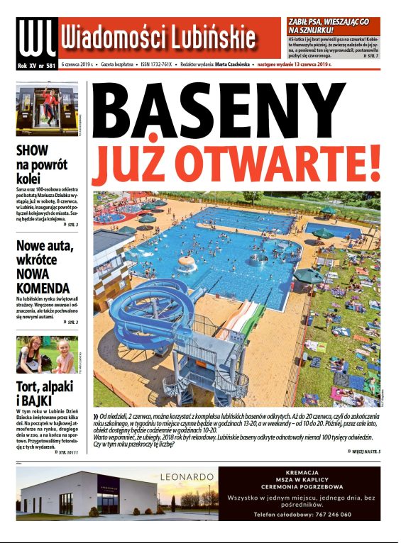W nowym numerze najstarszego bezpłatnego lubińskiego tygodnika, który ukaże się w czwartek 6 czerwca, piszemy również o międzynarodowych połączeniach kolejowych mających przejeżdżać przez Lubin, a co ważniejsze także się tu zatrzymywać, święcie strażaków, planach budowy pumptracka w naszym mieście czy bezpłatnych autobusach, które mają kursować do Polkowic.