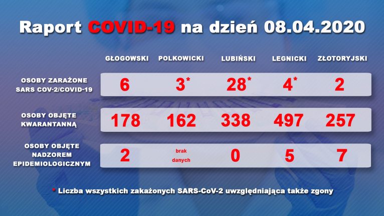 Na Dolnym Śląsku zakażonych jest już 539 osób, 4915 objętych jest kwarantanną lub izolacją, 1149 – nadzorem epidemiologicznym, a 236 przebywa w szpitalu ze względu na podejrzenie koronawirusa. 15 osób zmarło w naszym województwie z powodu koronawirusa.