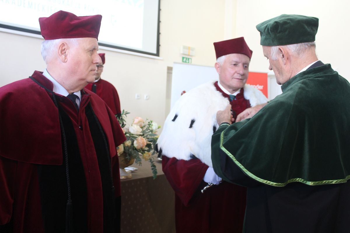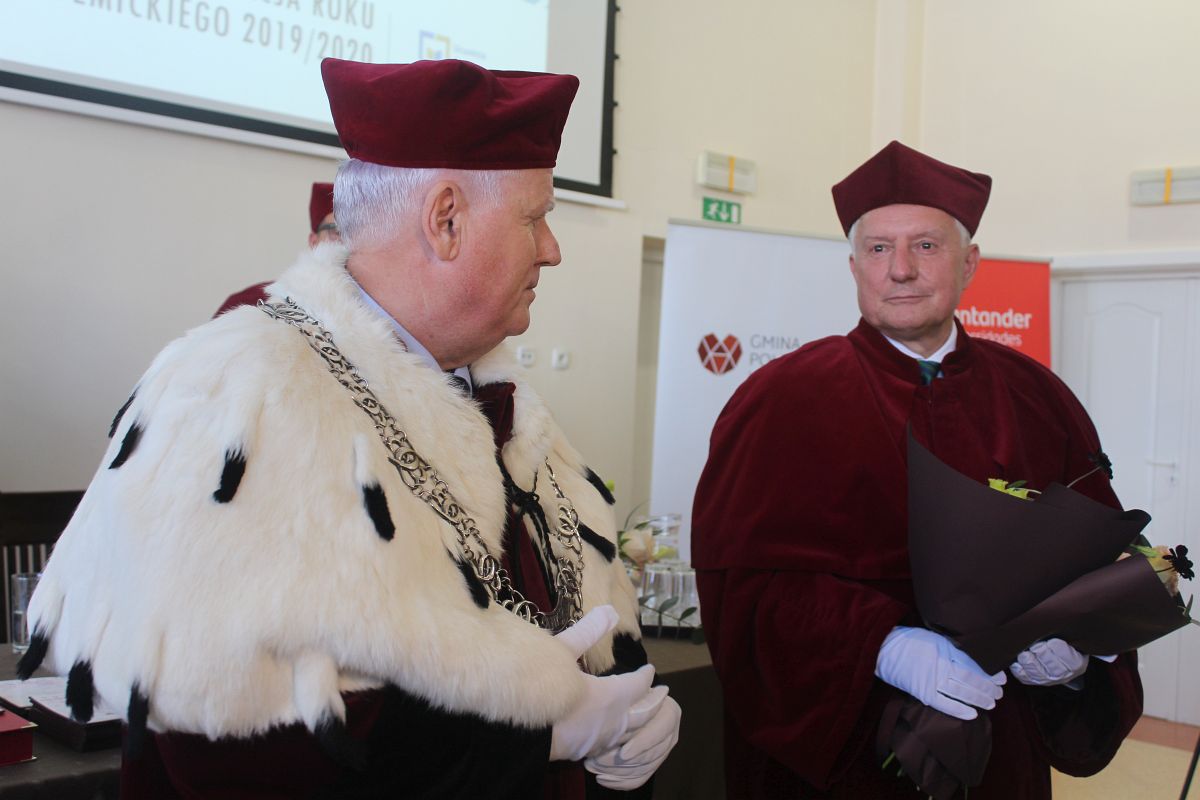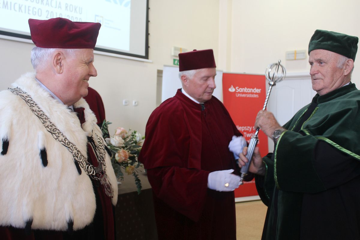 Dr Tadeusz Kierzyk przyjął insygnia władzy od ustępującego rektora dr. Włodzimierza Olszewskiego, który podziękował wszystkim swoim współpracownikom, a sam też otrzymał podziękowania za wieloletnią pracę na rzecz rozwoju uczelni.