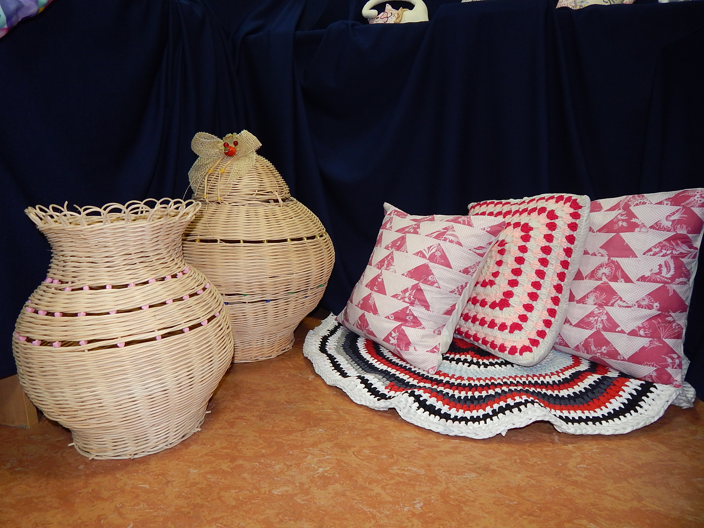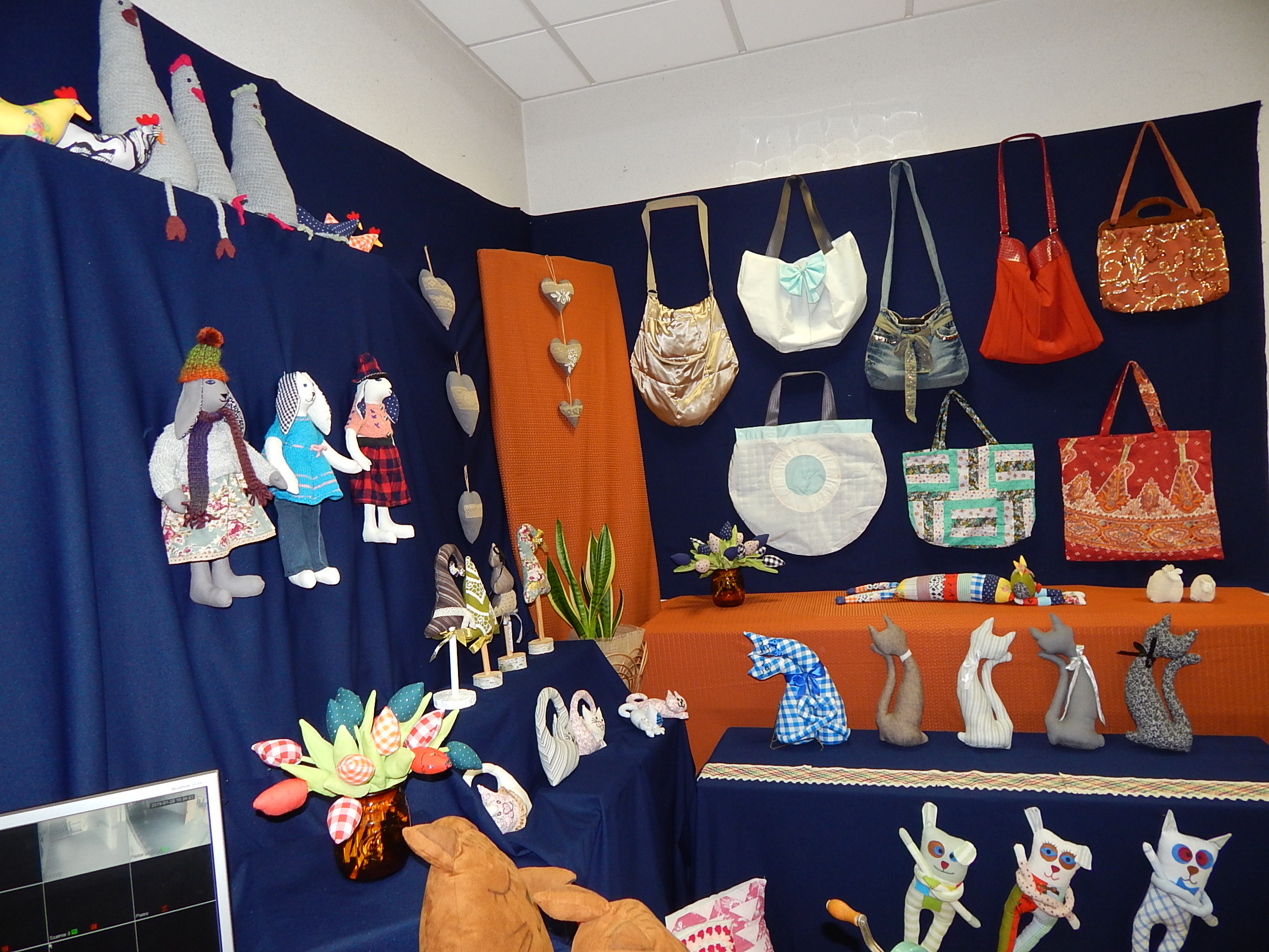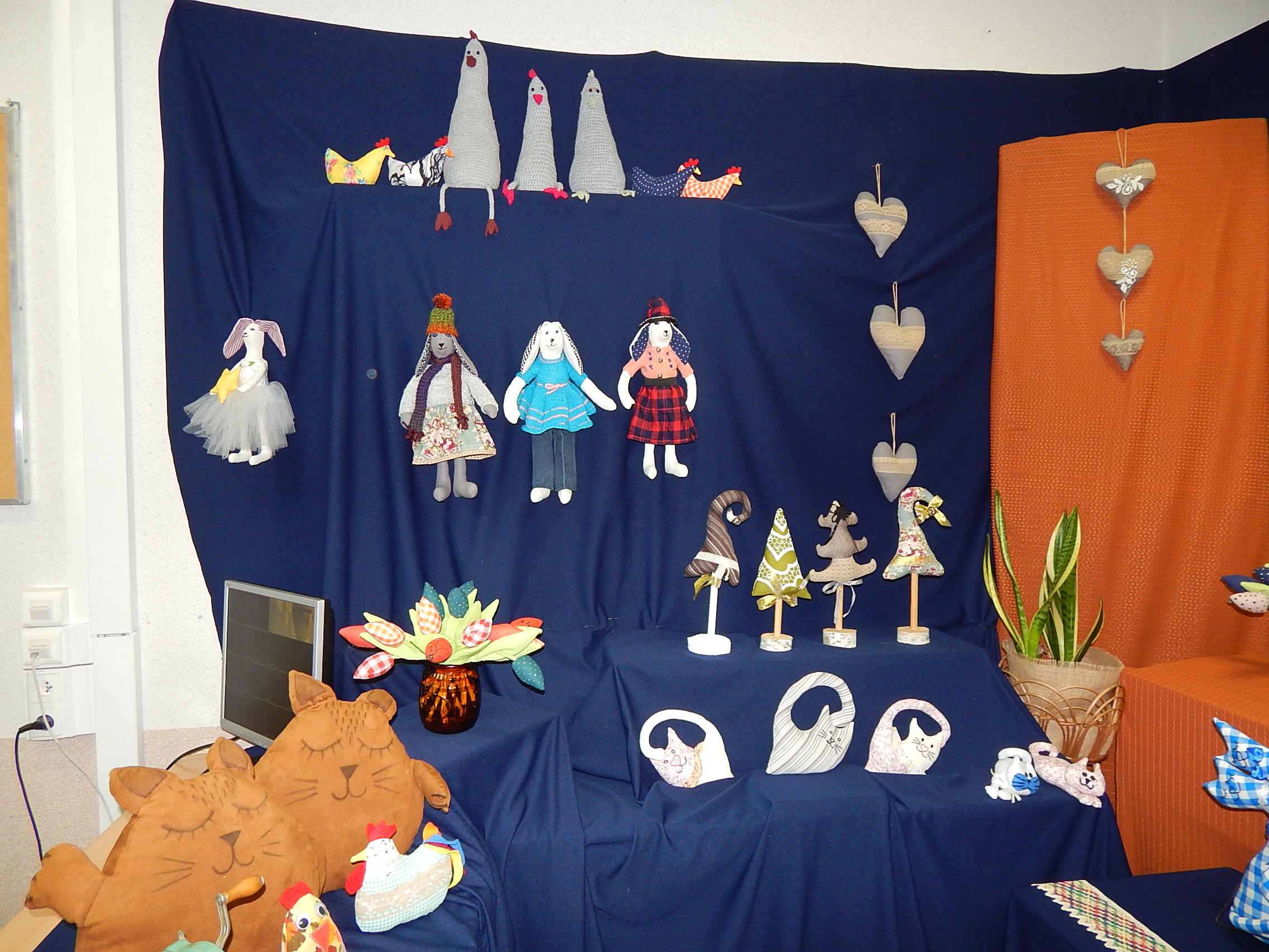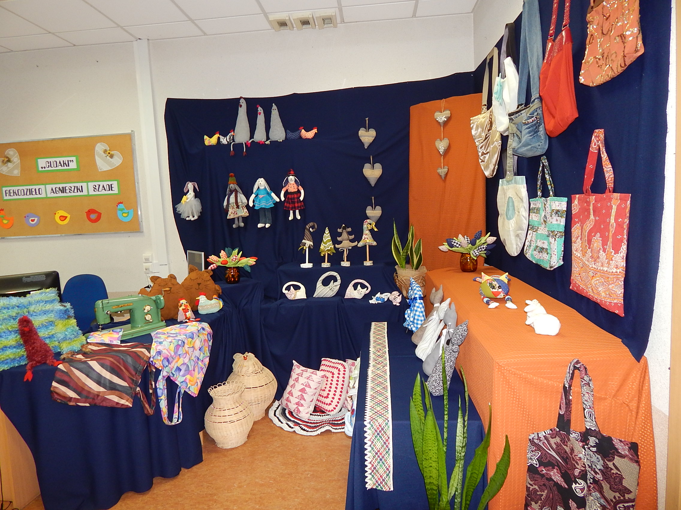Na wystawie prezentowane są różnorodne formy twórczości pani Agnieszki. Szyte z kolorowych tkanin przytulanki dla dzieci: koty, króliki, kurki, szydełkowe poduszki, ozdobne choinki, serduszka dekorowane bawełnianymi koronkami oraz puchate baranki. Jedną z ciekawych technik szycia, którą możemy obejrzeć na wystawie, są patchworki. To pracochłonne zajęcie, którego końcowym efektem są torby, poszewki na poduszki oraz zabawki dla dzieci. Interesujące są również torebki szyte z wzorzystych materiałów, sukienki balowe dla dziewczynek, dziergane dywaniki, a także wyplatane ozdobne kosze.