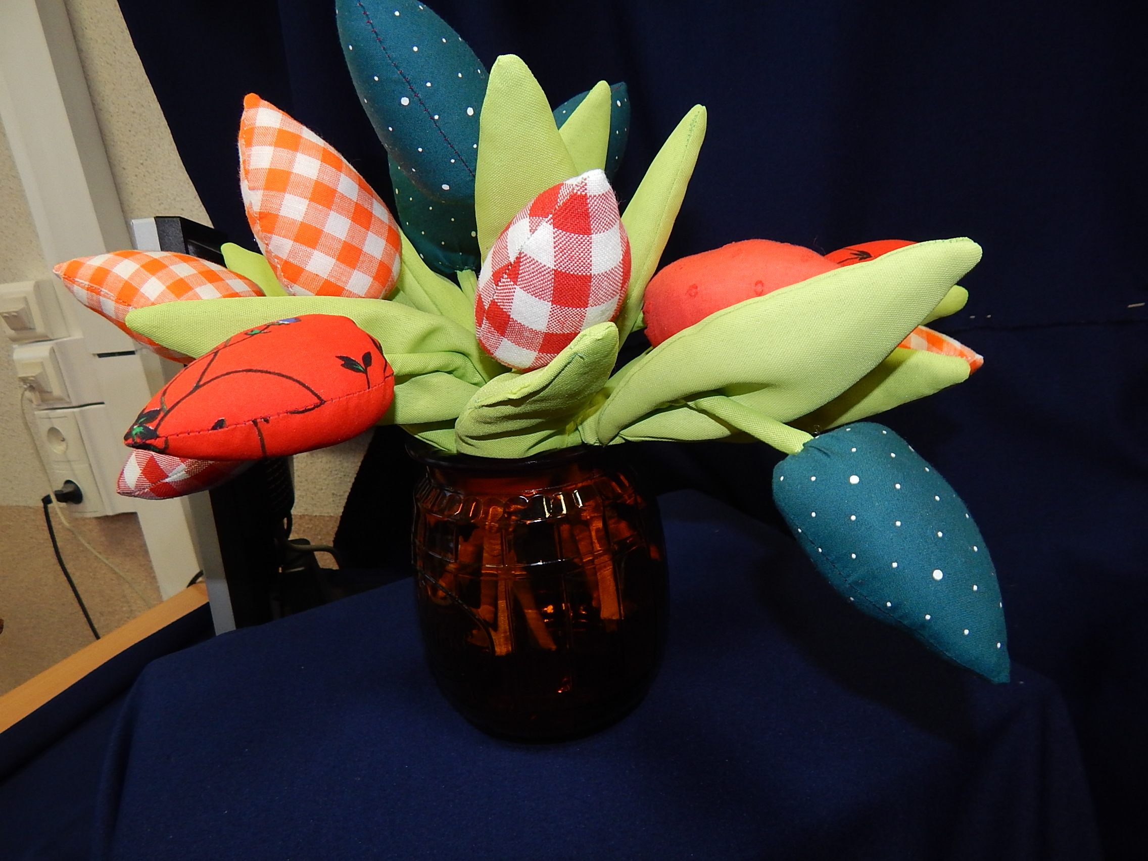 Gdy była dorosła, zaczynała od prostych form – obszywania obrusów, ściereczek, szycia poszewek na poduszki. Dziś ma już w tym spore doświadczenie. Wystawa to wynik kilkumiesięcznej pracy. To projekty własne oraz inspiracje z Internetu. Lubi przetwarzać, korzystać z materiałów, które trudno nazwać krawieckimi, są to m.in. worki jutowe, samochodowe poduszki powietrzne czy pasy bezpieczeństwa. Uwielbia przerabiać ubrania, zmieniać ich formę i przeznaczenie, nadawać starym ubraniom „nowe życie”. To rodzaj upcyklingu, wrzucenia rzeczy do wyższego obiegu, nadania nowego życia starym, niepotrzebnym przedmiotom, zmianie ich funkcji, a bardzo często także i formy. Oryginalność pomysłów, a także nietypowe łączenie wzorów i kolorów nadaje eksponatom unikalnego i wyjątkowego stylu.
