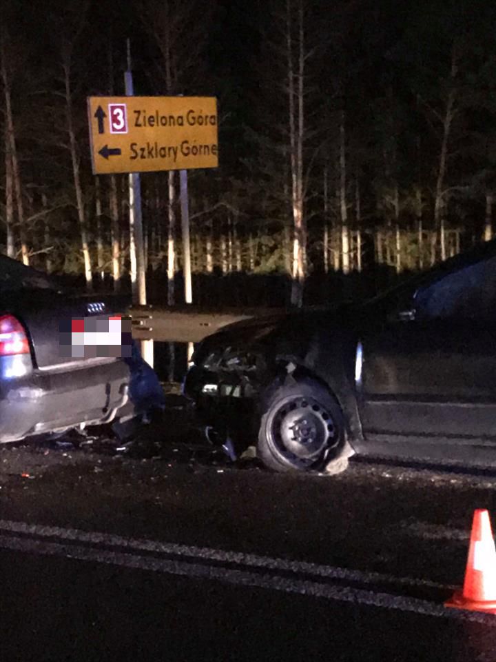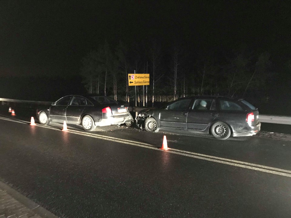 Na miejscu są zastępy z JRG Lubin, Zespoły Ratownictwa Medycznego i policja. Ruch odbywa się wahadłowo, w obu kierunkach bardzo długie korki. Funkcjonariusze kierują samochody na objazd przez Szklary Górne.