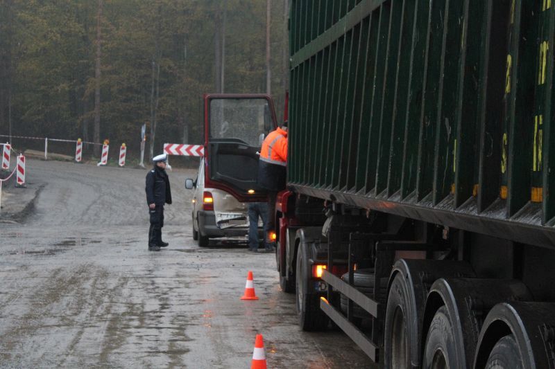 Kierowca ciężarówki został ukarany mandatem w wysokości 250 zł i sześcioma punktami karnymi.