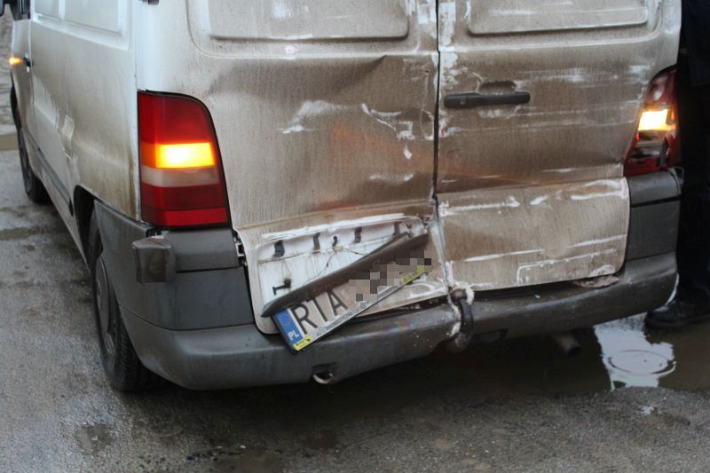 Przed godziną 7 rano jadący od strony Legnicy kierowca mercedesa vito zwolnił, żeby skręcić w lewo, w kierunku Zimnej Wody. Jadący za nim kierowca ciężarówki z naczepą nie zdążył na czas wyhamować i uderzył w tył busa. W rezultacie dwie osoby trafiły do Regionalnego Centrum Zdrowia w Lubinie.