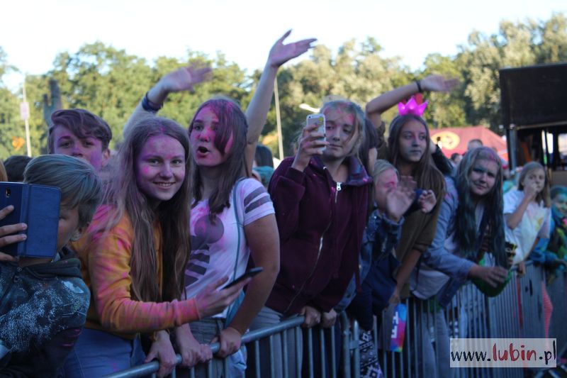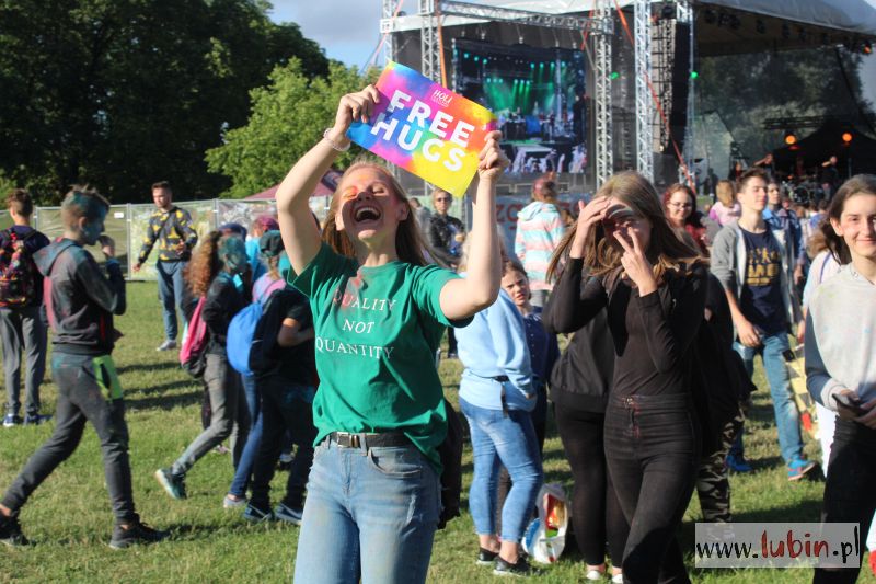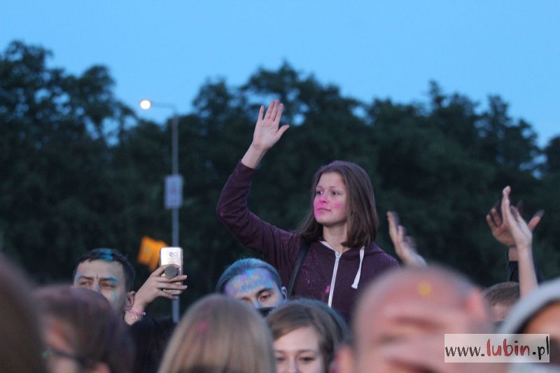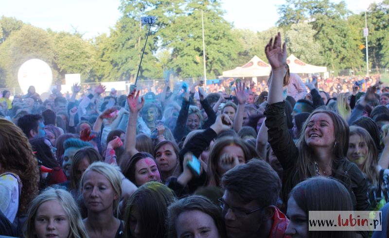 Między koncertami lubinianie mogli poczuć na własnej skórze, co to jest święto kolorów. Trzy razy publiczność obrzuciła się kolorowymi proszkami w ramach Holi Festiwal Poland, który do naszego miasta dotarł po raz pierwszy.