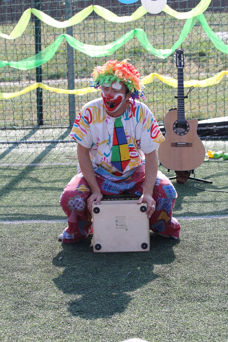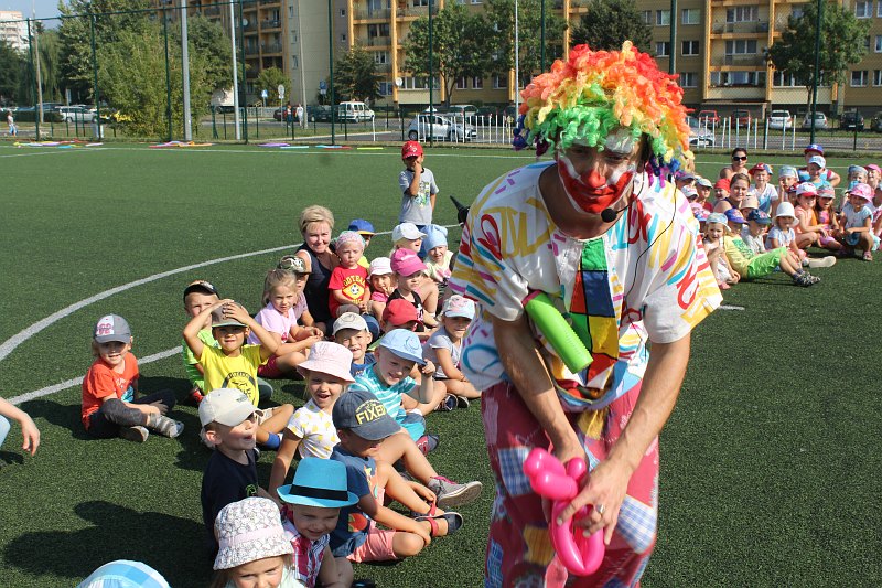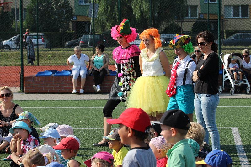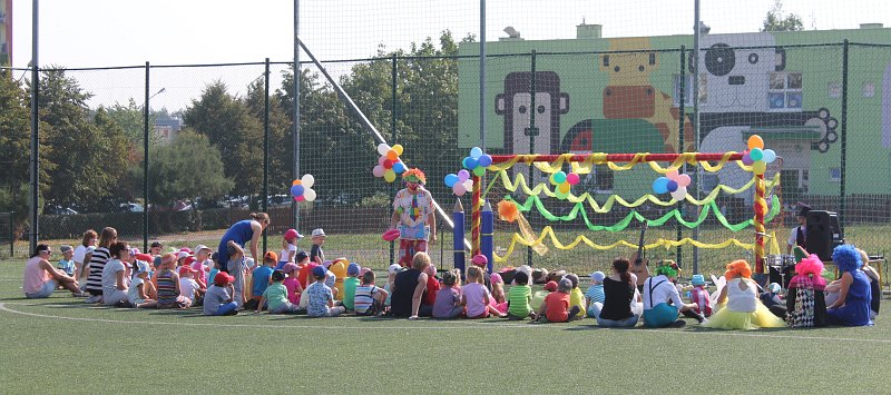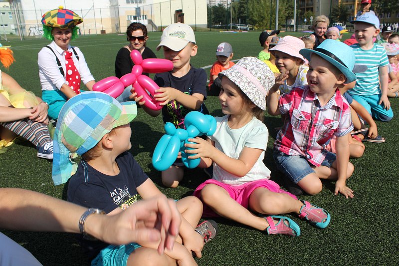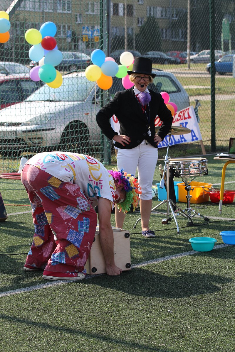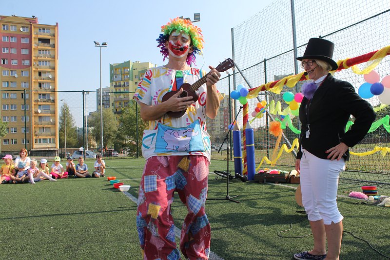 Do dzieciaków przyjechał też zawodowy klaun. Było więc to, z czego słynie: jada na jednokołowym rowerze, zwierzątka z balonów, żonglerka i dużo śmiechu. Na koniec przygotowano dla maluchów także zawody.