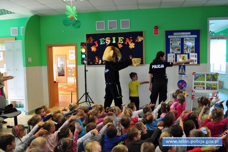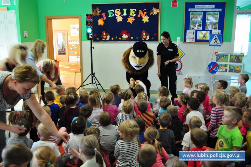 Komisarz Lew uczył przedszkolaki z Rudnej, jak prawidłowo przechodzić przez jezdnię. Było przy tym sporo zabawy. – Taka forma nauki na pewno na długo pozostanie w pamięci dzieci – mówi st. post. Agnieszka Zawadzka z lubińskiej policji.