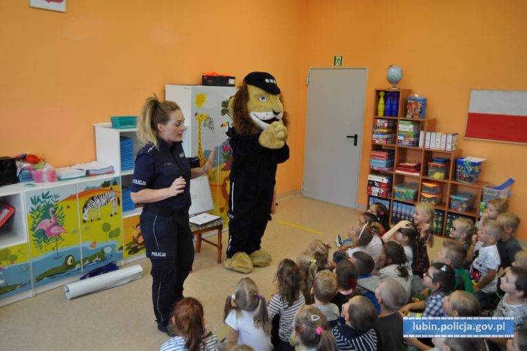 Przedszkolaki z Lubina odwiedził Komisarz Lew wraz z policjantką. Wspólnie poprzez zabawę uczyli maluchy podstawowych zasad bezpieczeństwa. Podczas tego spotkania dzieciaki między innymi dowiedziały się, jak bezpiecznie przejść przez jezdnię. Pomagał im w tym osobiście Komisarz Lew.