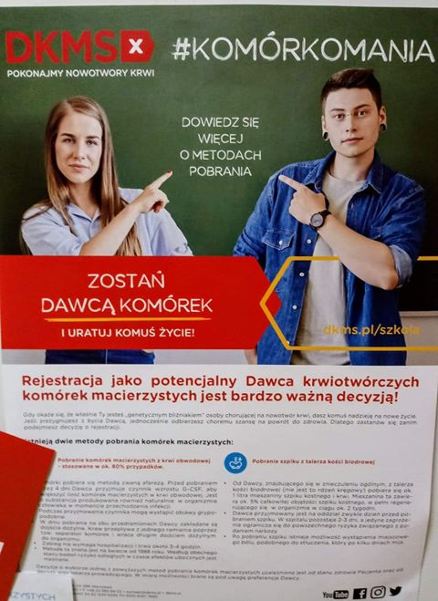 – Postanowiliśmy zorganizować akcję, by propagować wiedzę. Nowotwory krwi atakują wszystkich – zarówno młodych jak i starszych, a my nosimy w sobie cenne lekarstwo. Zapisanie się do bazy dawców nie jest niczym strasznym – przekonuje nauczycielka.