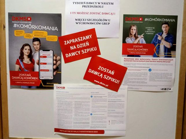 O tym, jak cenny lek w sobie nosimy, starają się uświadomić nas pracownicy Przedszkola miejskiego nr 13 w Lubinie. Od poniedziałku trwa tutaj tydzień dawcy szpiku, a przy wejściu natkniemy się na stanowisko DKMS. – Przyjść do nas może każdy – zachęca organizatorka Katarzyna Stępień, która uczy w przedszkolu. – Prosto z ulicy, ze spaceru czy odbierając pociechę z przedszkola. Wystarczy mieć ukończone 18 lat i być zdrowym – dodaje kobieta.