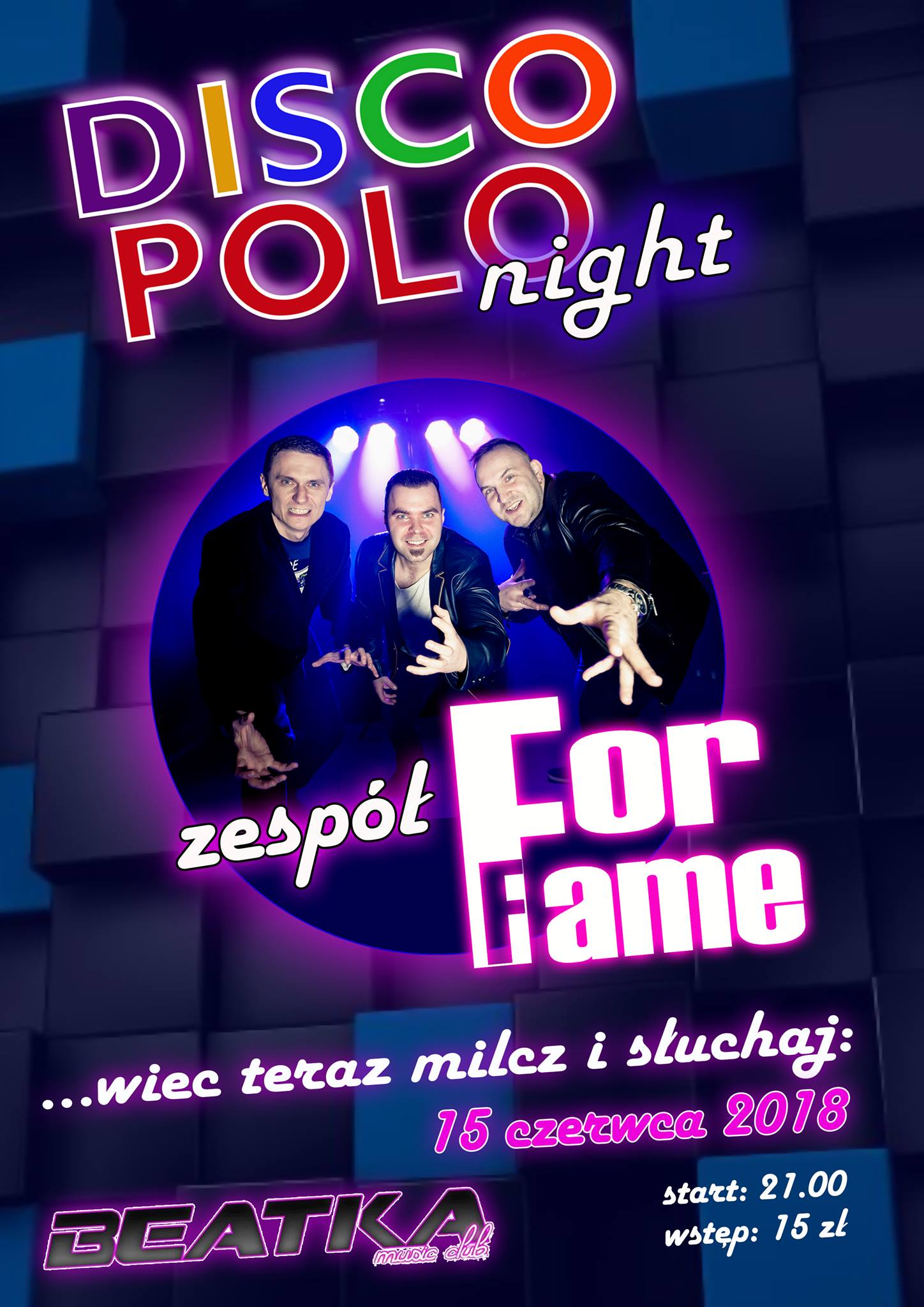 15 czerwca zabawa w klubie Beatka upłynie w rytmach disco. Na scenie wystąpi zespół ForFame, twórcy takich utworów jak: „Milcz i słuchaj”, „Jazda na parkiecie”, „Twoich oczu blask”.