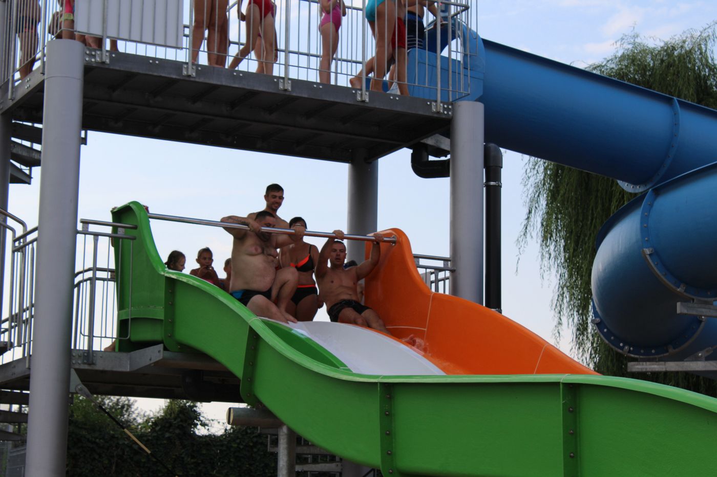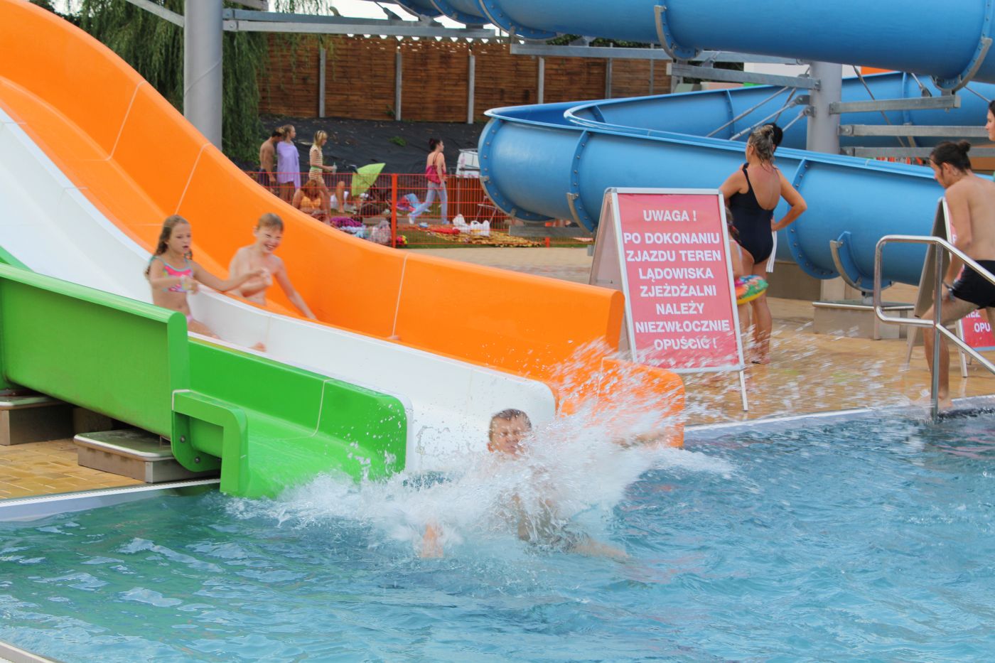 – Jesteśmy tu po raz pierwszy i jest rewelacyjnie – mówi pani Ewelina z Gogołowic. – Bardzo mi się podoba to, że jest przystosowany też dla malutkich dzieci, dzięki nasz mały chrabąszcz pływa tu i zjeżdża, starsza córka ma swoje miejsce. Jest co wypić, zjeść, jest plac zabaw, teren zielony – wylicza.