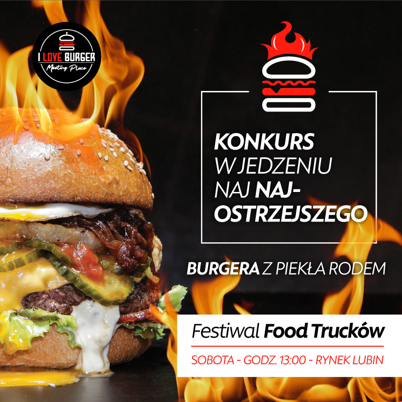 Zjedzenie burgera to dla ciebie pestka? Nie przeszkadza ci nawet, jeśli jest bardzo ostry? Zapisz się na konkurs – w ramach zbliżającego się Festiwalu Food Trucków odbędą się też konkursy na najszybsze zjedzenie burgera, a także na zjedzenie tego dania w bardzo ostrej wersji. – Zapraszamy do zapisów, a przede wszystkim do wspólnej zabawy – zachęca Marcelina Falkiewicz, odpowiedzialna za promocję wydarzeń w lubińskim magistracie.