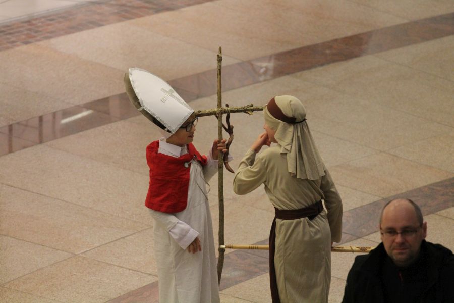 „To my, to my – chrześcijańskie lwy!” – zabrzmiało dziś w centrum Lubina. Radosny i rozśpiewany Korowód Świętych po raz trzeci wyruszył spod kościoła Najświętszego Serca Pana Jezusa, aby przemierzywszy ulice miasta, dotrzeć na Bal Świętych do galerii Cuprum Arena.