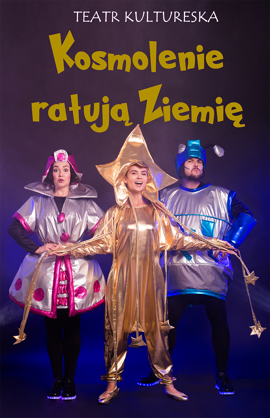 „Kosmolenie ratują Ziemię” Teatru Kultureska to magiczna kosmiczna podróż w czasie. Jest rok 3017. Ziemię ogarnęła zagłada. Przez zanieczyszczenia, z planety zniknęły rośliny i zwierzęta. Pośród dymu i zgliszczy słychać tylko płacz ostatniej żyjącej istoty – Kropelki Wody. A tymczasem, gdzieś daleko w kosmosie, na odległej planecie żyją w spokoju Kosmolenie. Ewa, która ciągle ziewa i Michał Kichał – to największe kosmiczne leniuchy. W ich duszy tli się jednak marzenie – chcieliby zostać bohaterami przestworzy. Pewnego dnia na ich planetę dociera wiadomość z Ziemi z błaganiem o pomoc. Czy zareagują? Czy uda się uratować najpiękniejszą planetę w kosmosie?