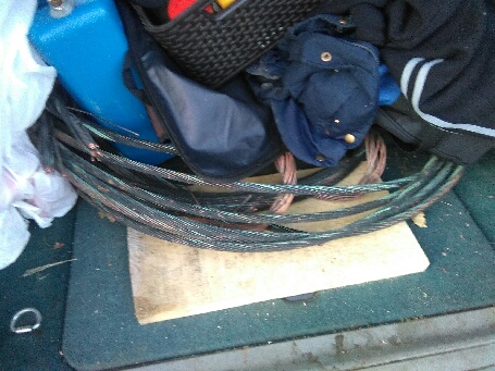 Policjanci zabezpieczyli także narzędzia, w tym nożyce służące do cięcia metalu oraz zwyżki służące do podwieszania uciętej linii trakcji.