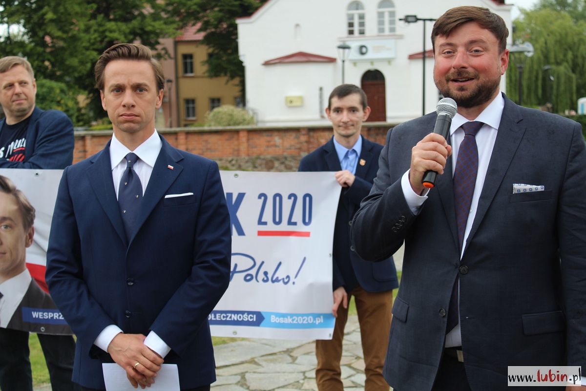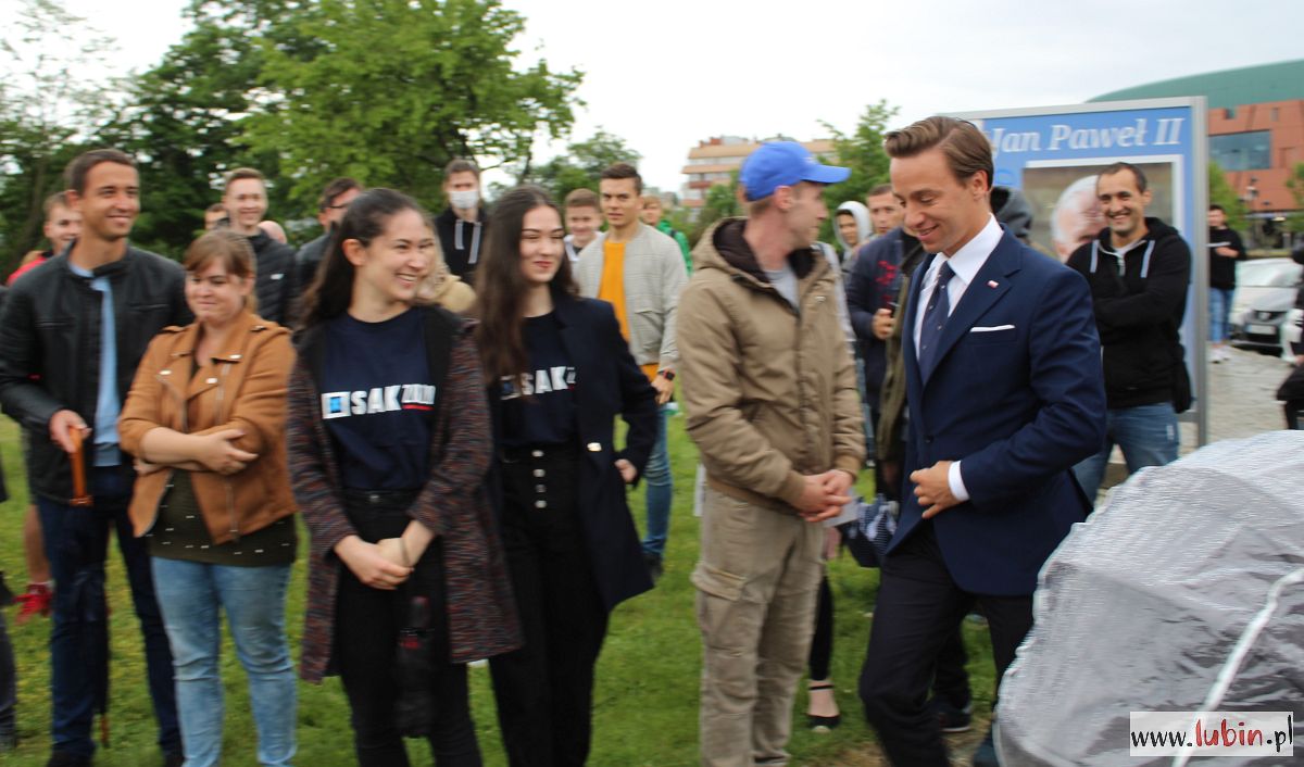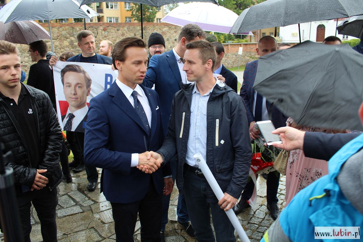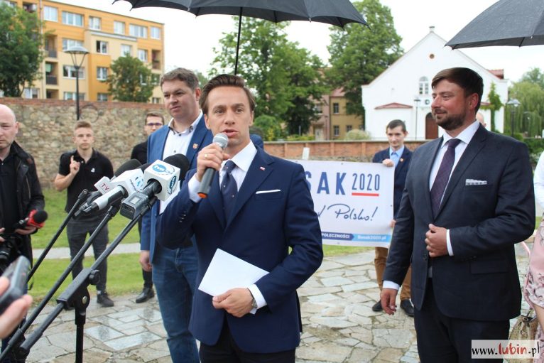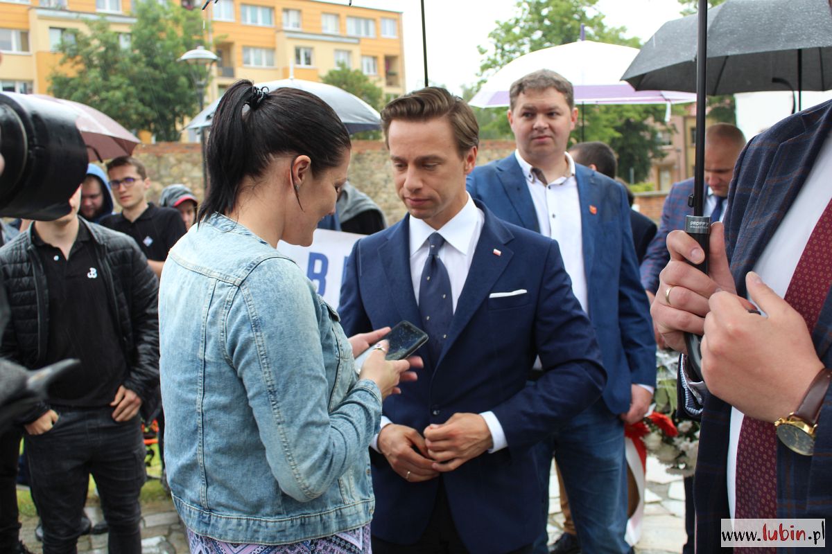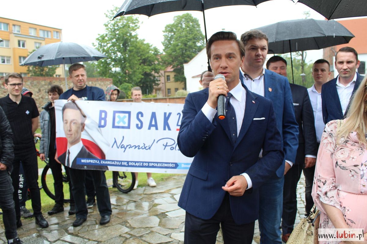 Nasze miasto znalazło się na trasie kampanijnego objazdu kraju Krzysztofa Bosaka. Przyjechał tu spóźniony o ponad pół godziny z Wrocławia, później wybierał się do Leszna. Mimo deszczu pod pomnikiem Pamięci Ofiar Lubina ‘82, gdzie sztab kandydata Konfederacji zaprosił dziennikarzy na briefing prasowy, pojawiło się sporo mieszkańców.