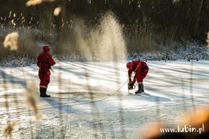 Policja apeluje przy tym o ostrożność. – Dzisiaj ćwiczymy ze strażakami wyciąganie osób z zamarzniętego zbiornika, ale mamy nadzieję, że nigdy nie będziemy musieli wykorzystywać tych umiejętności – podkreśla podkomisarz Sylwia Serafin, oficer prasowy KPP w Lubinie. – Lód może wyglądać na gruby, ale jest nieprzewidywalny. Chwila nieuwagi może skończyć się wpadnięciem do lodowatej wody i realnym zagrożeniem życia. Apelujemy szczególnie do rodziców i dzieci o bezpieczne spędzenie nadchodzących ferii.