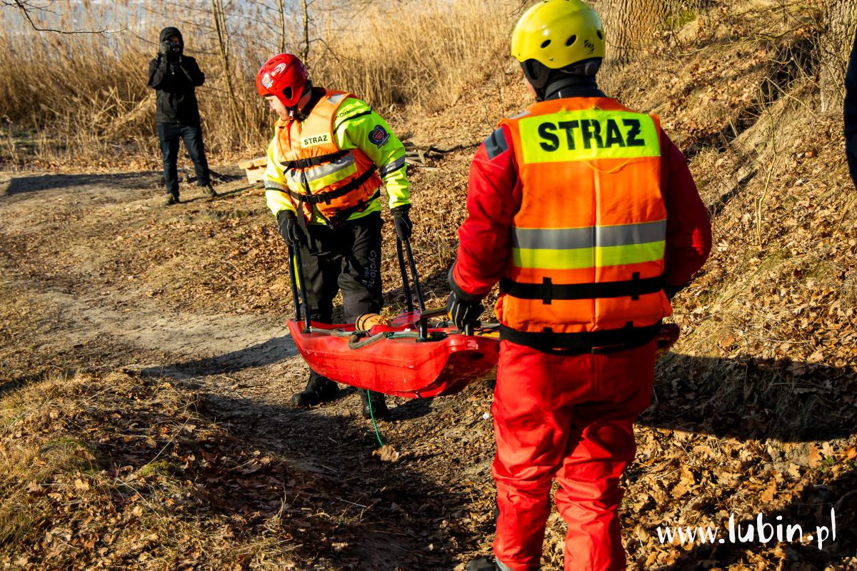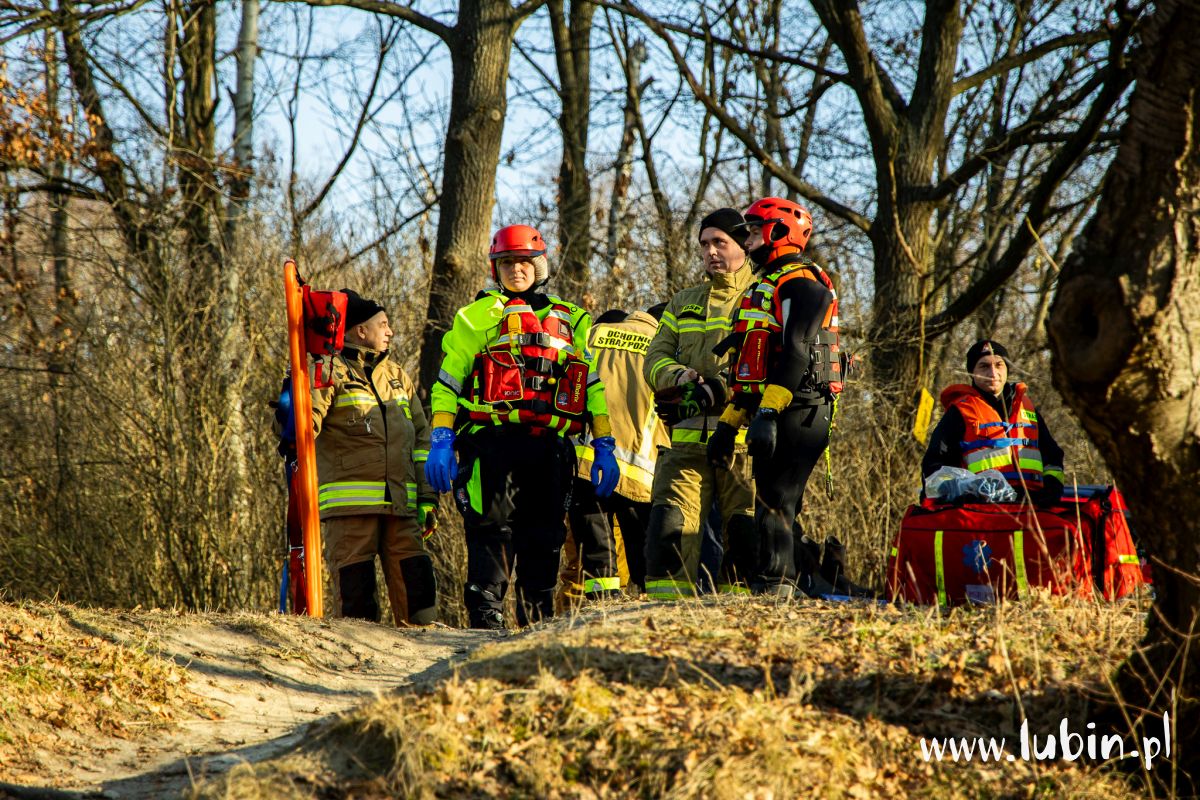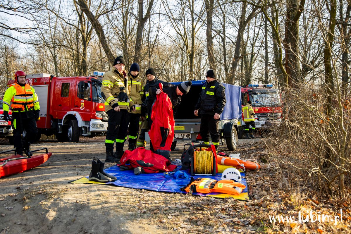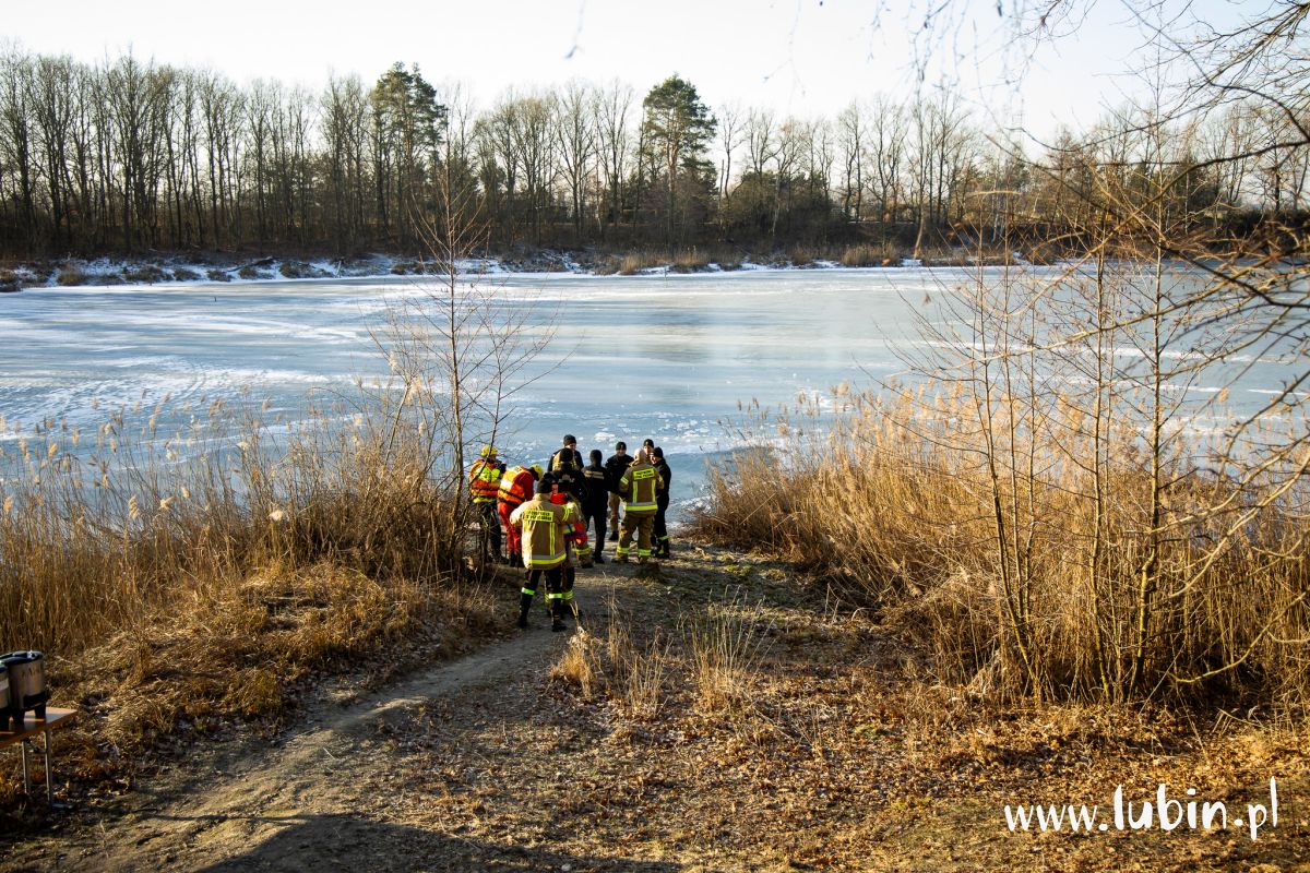 Pod człowiekiem załamał się lód, a poszkodowany wpadł do przerębli – służby ratunkowe z powiatu lubińskiego wzięły dziś udział w ćwiczeniach na zbiorniku wodnym potocznie nazywanym cegielnią, położonym koło Ręszowa w gminie Ścinawa.
