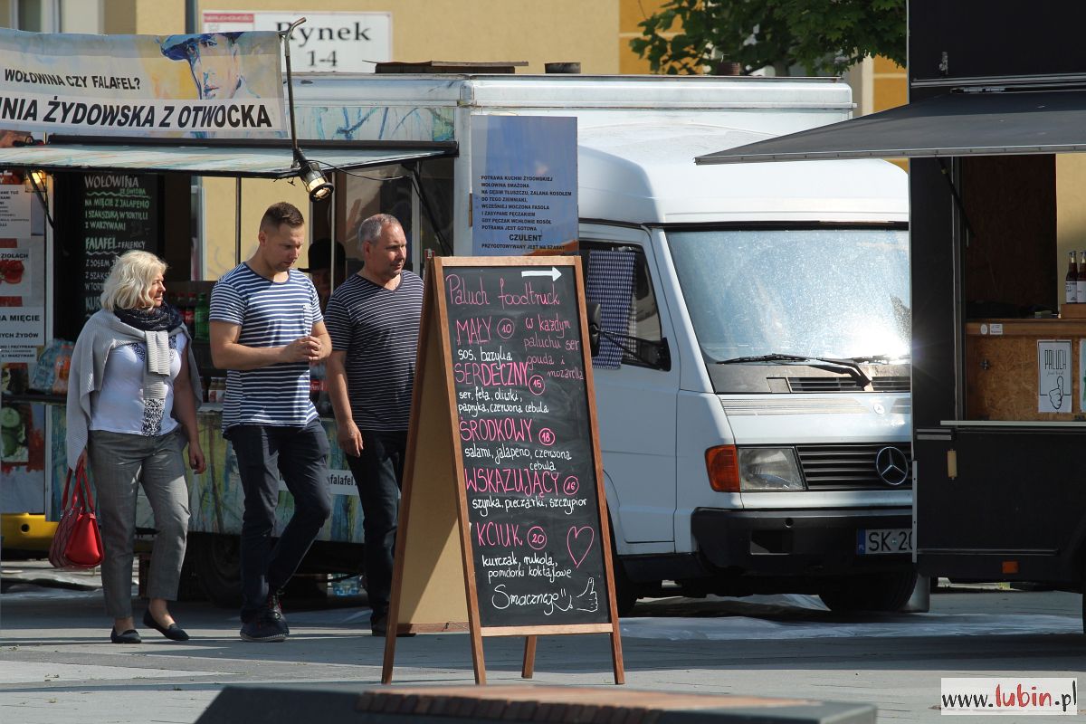 W rynku stanęło kilkanaście food trucków. Dziś, 7 czerwca, będą czynne do godziny 21. W sobotę zaś kuchnie na kołach będą karmić lubinian od godziny 12 do 21, a w niedzielę od 12 do 20.
