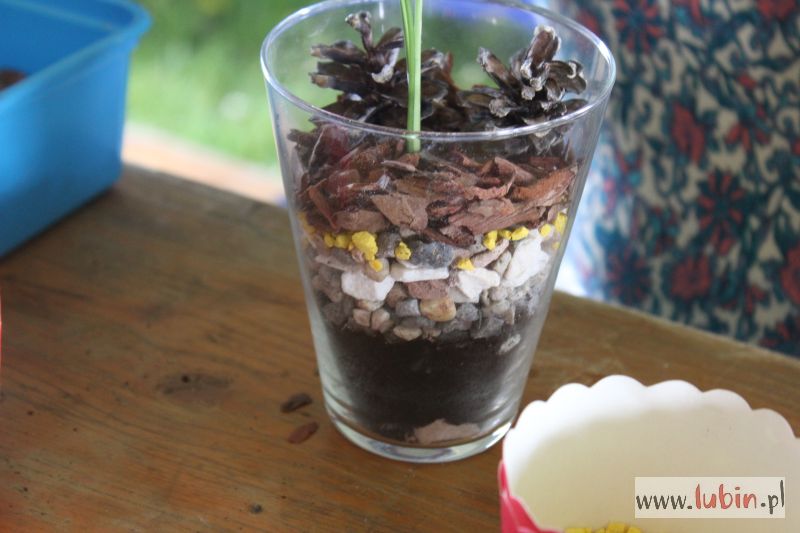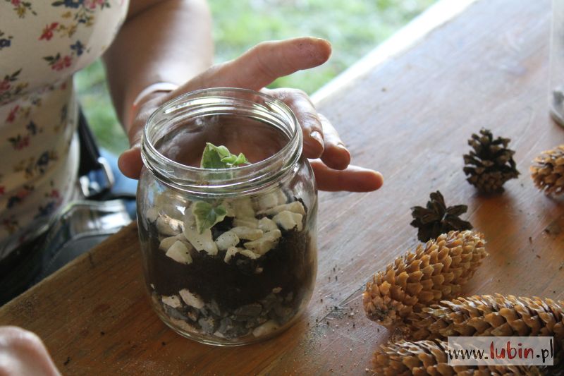 Pani Maria z tą techniką miała do czynienia pierwszy raz, ale jak mówi jest zachwycona. – Było to bardzo proste. Chętnie odtworzyłabym to w domu. Muszę tylko zdobyć potrzebne materiały, ale nie jest to trudne. Do wykonania tej ozdoby użyłam kamyków, ziemi, piórek i wstążek, które mogę znaleźć w pasmanterii. A słoik czy szklankę ma chyba każdy – opowiada pani Maria.