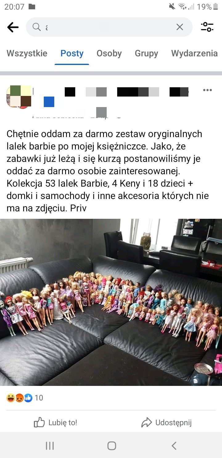 Kobieta zastanawia się też, czy potencjalny oszust/oszustka jest poszukiwany przez organy ścigania. Jak informuje rzeczniczka lubińskiej policji, w ostatnim czasie do miejscowej komendy nie wpłynęło żadne zgłoszenie dotyczące prób oszustwa na lalki Barbie.