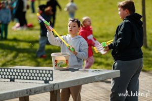 Były również dodatkowe atrakcje, jak puszczanie baniek czy zabawa z chustą animacyjną. Można też było spróbować swoich sił ze strzelania do celu wodą.