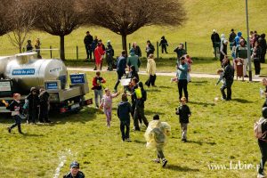 Polewanie wodą z okazji dzisiejszego święta odbyło się na placu przy ul. Konstytucji 3 Maja. W zabawie „Lany poniedziałek na Wielorybie” wzięli udział i młodsi, i starsi mieszkańcy Lubina. Każdy chciał nabrać choć trochę i zmoczyć innych. Uczestnicy zabawy wyposażeni w różne pojemniki na wodę szaleli, przy wtórze pisków i okrzyków radości.