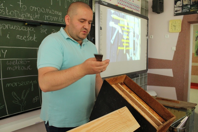 Dzieci zawsze zadają pytania i przez całą lekcję są skupione i zaciekawione – mówi pszczelarz. – A to bardzo ważne, bo pszczoły chorują, trzeba o nie dbać i na nie uważać. Bez nich stracilibyśmy wiele roślin, w tym około 90 procent drzew i krzewów owocowych.
