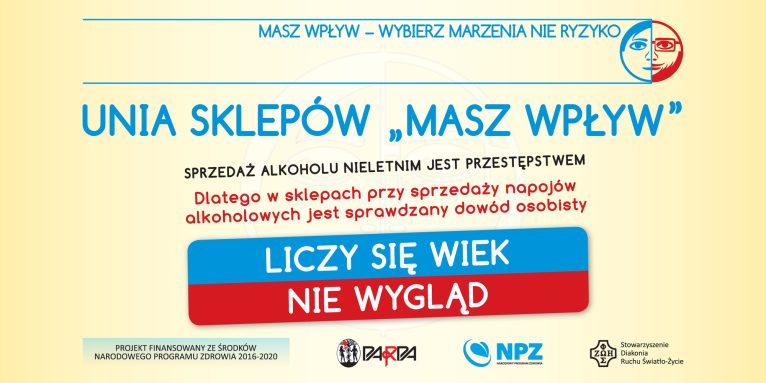 „MASZ WPŁYW” to kampania przygotowana na zlecenie Państwowej Agencji Rozwiązywania Problemów Alkoholowych, w ramach Narodowego Programu Zdrowia. Przygotowano specjalne pakiety materiałów edukacyjnych dla sprzedawców, wśród których są plakaty, naklejki i ulotki. Gmina Lubin, jako uczestnik tej kampanii przekaże je teraz do sklepów i lokali gastronomicznych. Działaniom tym towarzyszyć będzie także kampania medialna z wykorzystaniem spotu filmowego, której celem będzie zwrócenie uwagi na problem sprzedaży alkoholu nieletnim i jednoczesne zachęcenie świadków tych sytuacji do reagowania. W całej Polsce także wolontariusze -ambasadorzy kampanii będą rozmawiać w lokalnych sklepach z kierownikami i sprzedawcami na temat konieczności ograniczania dostępności napojów alkoholowych dla osób niepełnoletnich. Akcję tę organizuje Stowarzyszenie Diakonia Ruchu Światło-Życie.