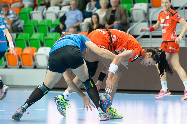 Lubinianki zaczęły mecz, ale pogubiły się w ataku i kontrę przyjezdnych wykorzystała Aleksandra Stokłosa. Kolejną akcję Startu wybroniła już Monika Wąż, a pierwszą bramkę po stronie miedziowych zdobyła Jovana Milojević. W siódmej minucie na tablicy wyników było 3:4 i co warte zauważenia wszystkie bramki dla elblążanek padły po kontratakach. Przed upływem dziesiątej minuty o czas dla swojej drużyny poprosił Andrzej Niewrzawa. Wówczas jego drużyna przegrywała w Lubinie 4:5. Chwilę później miedziowe wyszły na dwie bramki przewagi, ale Start zdołał odzyskać prowadzenie i znów byliśmy świadkami wyrównanego boju. Lubinianki, głównie za sprawą udanych interwencji Moniki Wąż i skutecznych rzutów Karoliny Semeniuk wyszły na dwubramkowego prowadzenie, jednak jeszcze przed przerwą przyjezdne zdołały doprowadzić do remisu.