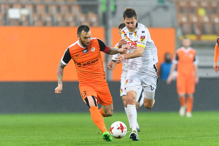 Żółte kartki: Filip Starzyński, Martin Polacek, Aleksandar Todorovski (KGHM Zagłębie Lubin) oraz Gutieri Tomelin (Jagiellonia Białystok).