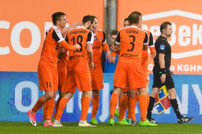 Gole dla gospodarzy strzelili Arkadiusz Woźniak, Łukasz Piątek i Łukasz Janoszka, dla gości dwukrotnie trafił Cillian Sheridan i po razie Ivan Runje oraz Arvydas Novikovas.